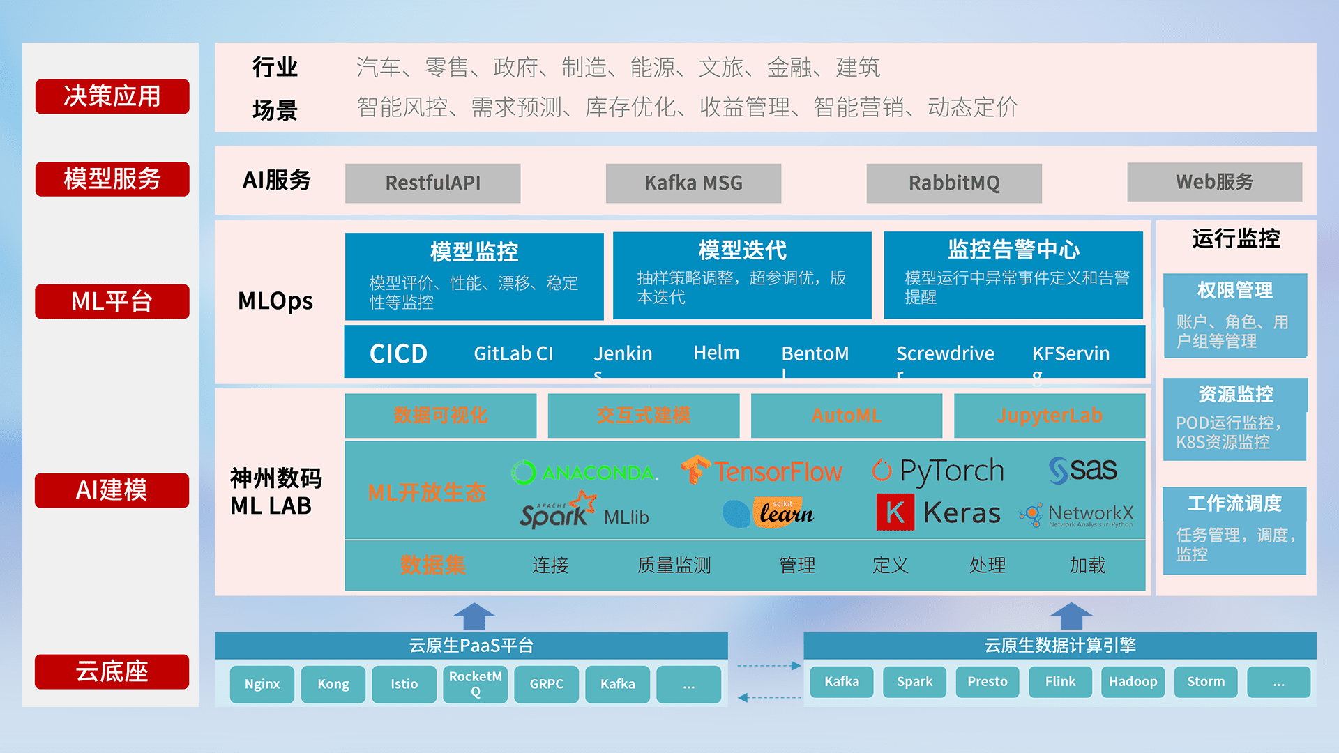 数据+模型双引擎驱动,,面向智能服务场景,,快速灵活利用AI技术,,,,支持业务决策,,,,助力企业智能化转型破局。。。。